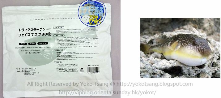 此面膜針對改善皮膚粗糙、毛孔粗大,及欠缺彈性。 新鮮河豚在日本高級餐廳至有機會品嚐, 大家又知否其魚皮含有極豐富的膠原蛋白肽呢?乃珍貴美顏營養, 加上清除自由基能力強,有效抗氧化, 可維持肌齡年輕及增加肌膚彈性。 此面膜精華液質地很水感容易吸收,連續敷上兩星期, 面上毛孔顯著細緻了(但鼻位較粗大的則起不了效用), 皮膚更飽滿有彈性,亮澤度也自然提升。雖然無添加香料, 但絕不會有腥味啊!